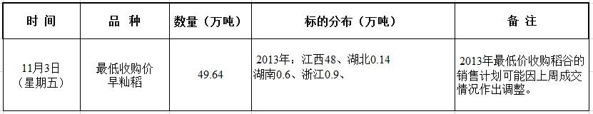 11月3日最低收购价稻谷(2013年)竞价销售交易公